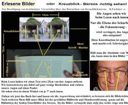 Kreuzblickstereos haben u.a. den Vorteil, dass man sehr einfach erreichen kann, dass jedes Auge nur sein Bild sieht und das konkurrierende, für das andere Auge zuständige, ausblenden kann. Damit verbessert sich der Bildeindruck erheblich.