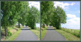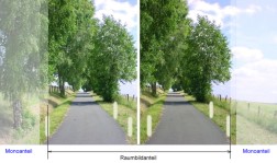 Hier ist die Verwendung der (Hand-)Blende wohl unabdingbar, um einen einwandfreien Raumeindruck zu erreichen. Dabei ist die Blende dichter an die Augen (ca12-15cm) zu führen, was ja logisch aus dem Strahlengang folgt. Es gibt nur einen schmalen Abstandsbereich der Blende , indem das Bild scharf rahmenbegrenzt erscheint.
